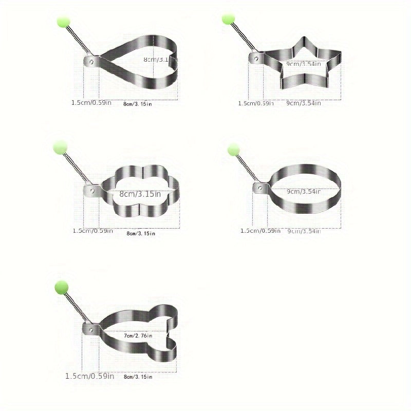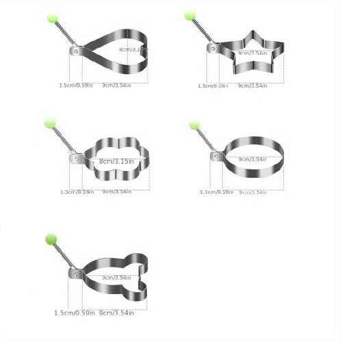 Set Of 5 Stainless Steel Fried Egg Molds, Kitchen Diy Egg Fryer, Love Frying Eggs, Egg Rolled Egg Model, Fried Egg Pancake Fryer