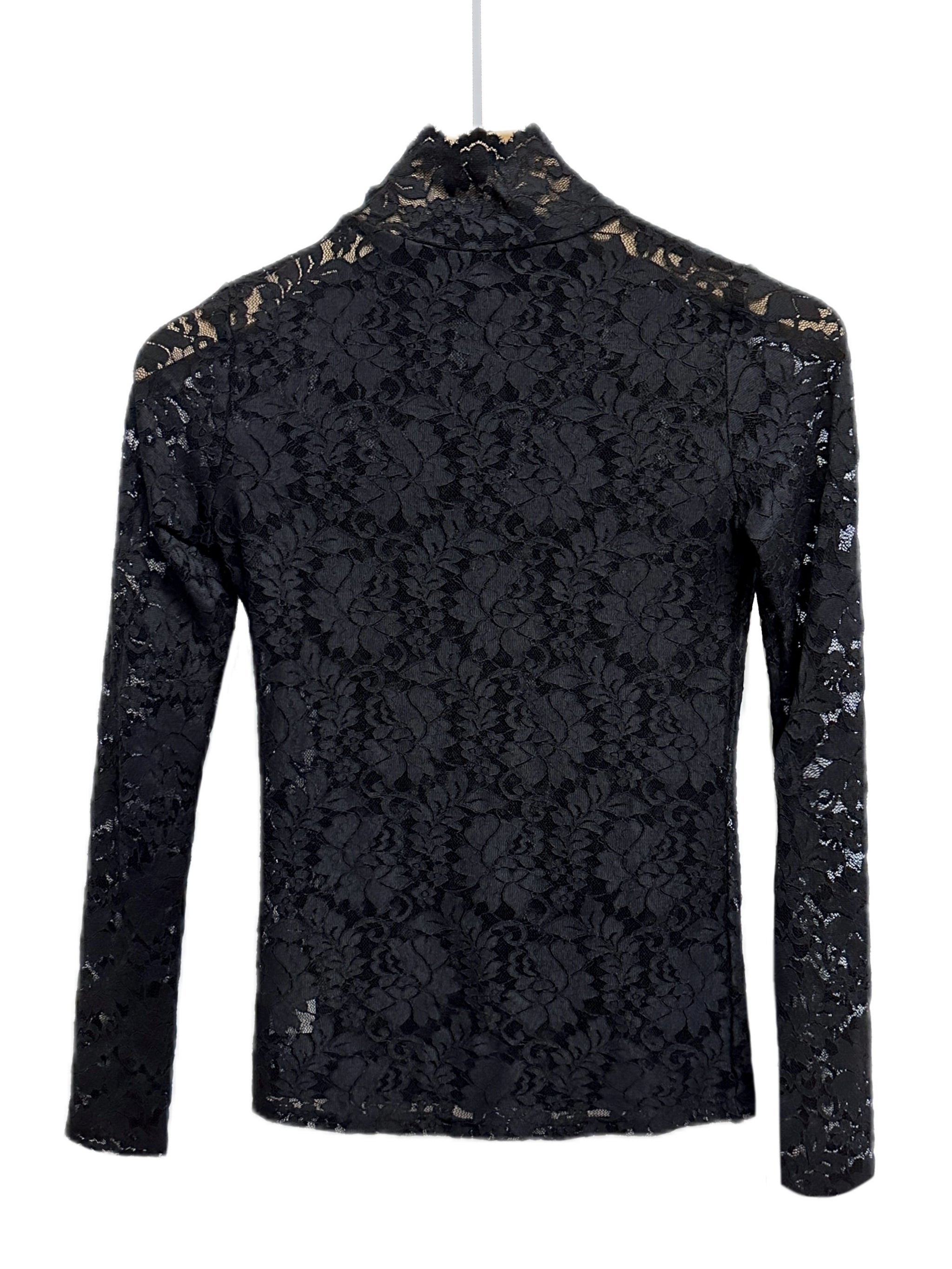 Sexy Lace Mock Neck Long Sleeve Slim Fit Top - Flattering, Breathable, and Comfortable for Spring and Fall - Women's Stylish Clothing for Everyday Wear