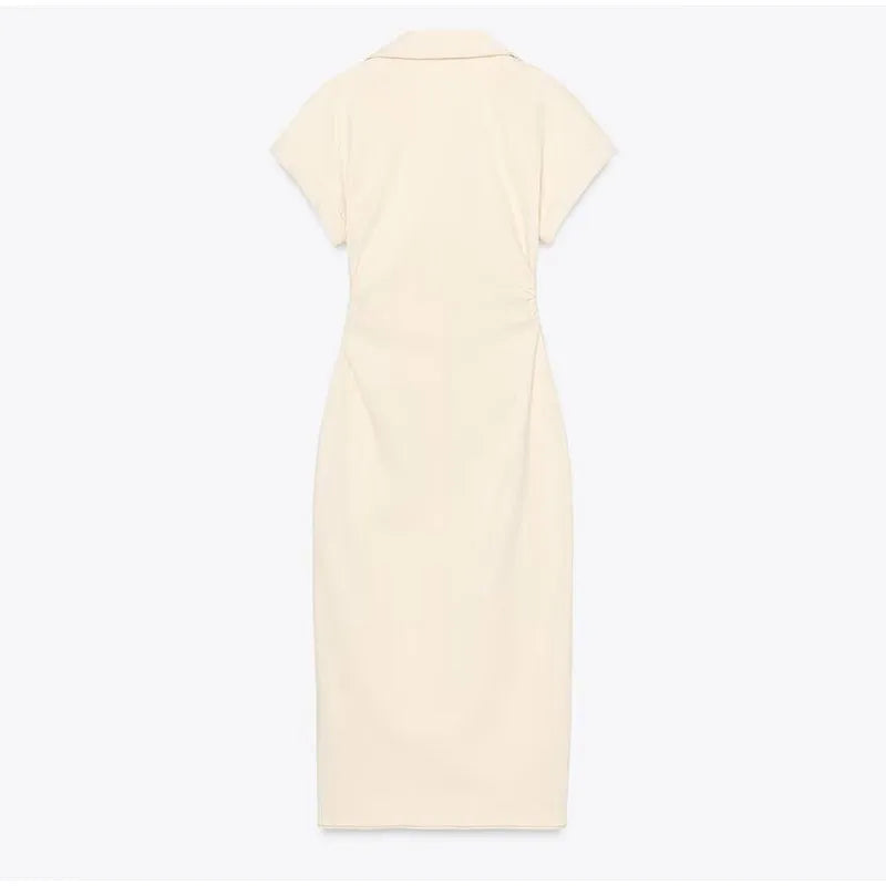 • Short-sleeved comfort: Featuring single-breasted lapels, this dress offers warmth and style in the colder seasons.