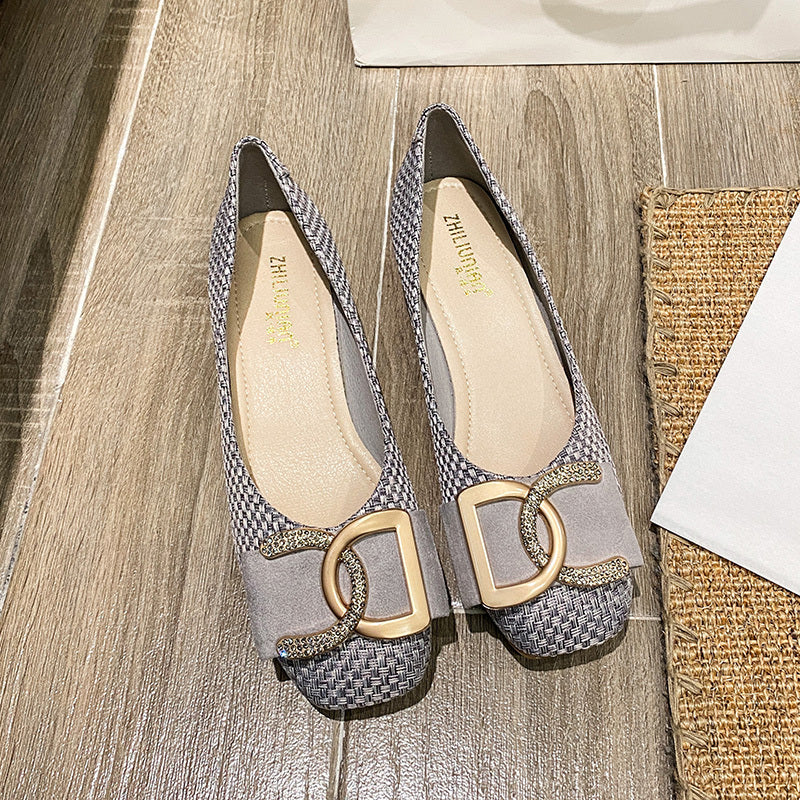 Small Fragrance Wind Single Shoe Women's Spring and Autumn New Outdoor Comfortable Versatile Soft Sole Low-Heel Non-Tiring Four Seasons Square-Toe Mid-Heel Flat Shoes