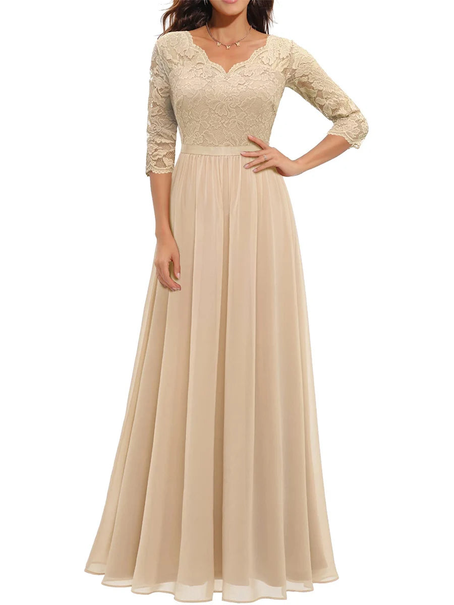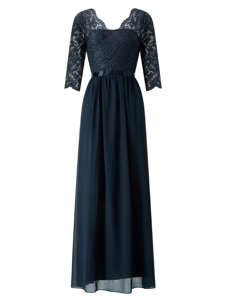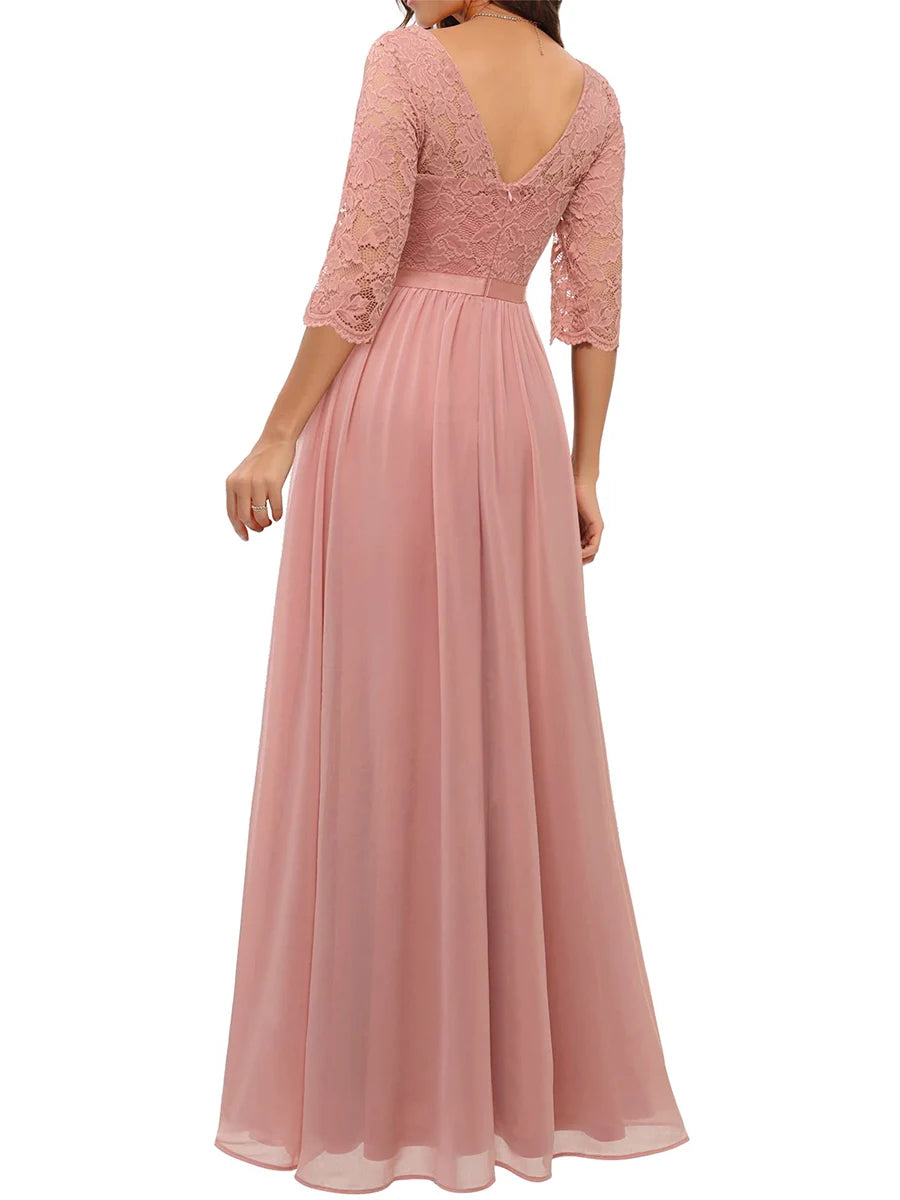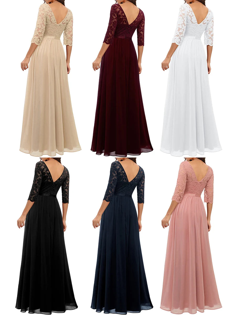 Long Dress Patchwork Lace V-neck Mid-Sleeve Backless Maxi Dress For Women