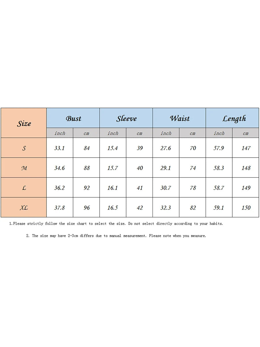 S Dress Length: 59.00 Bust: 33.90 Waist: 27.60 Sleeve: 15.70
