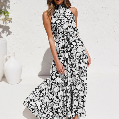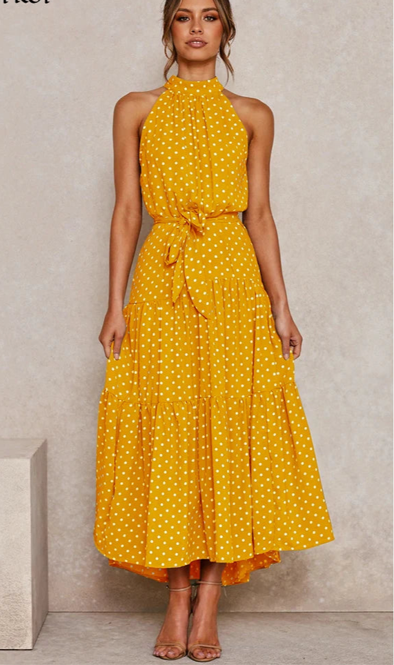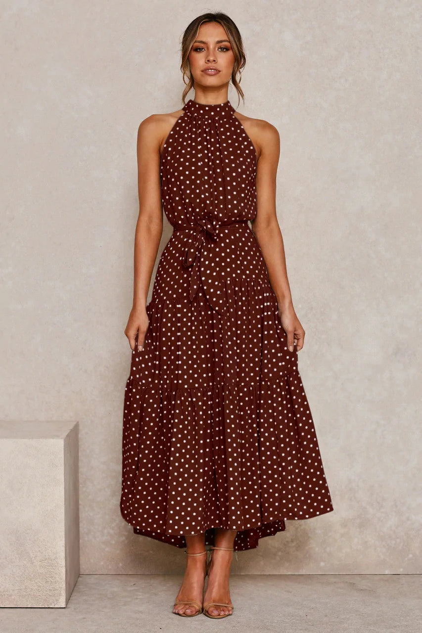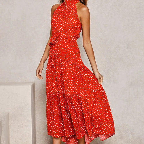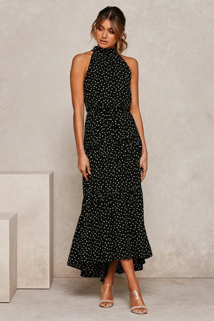 Long Dress Polka Dot Casual Dress Black Sexy Halter Clothes For Women