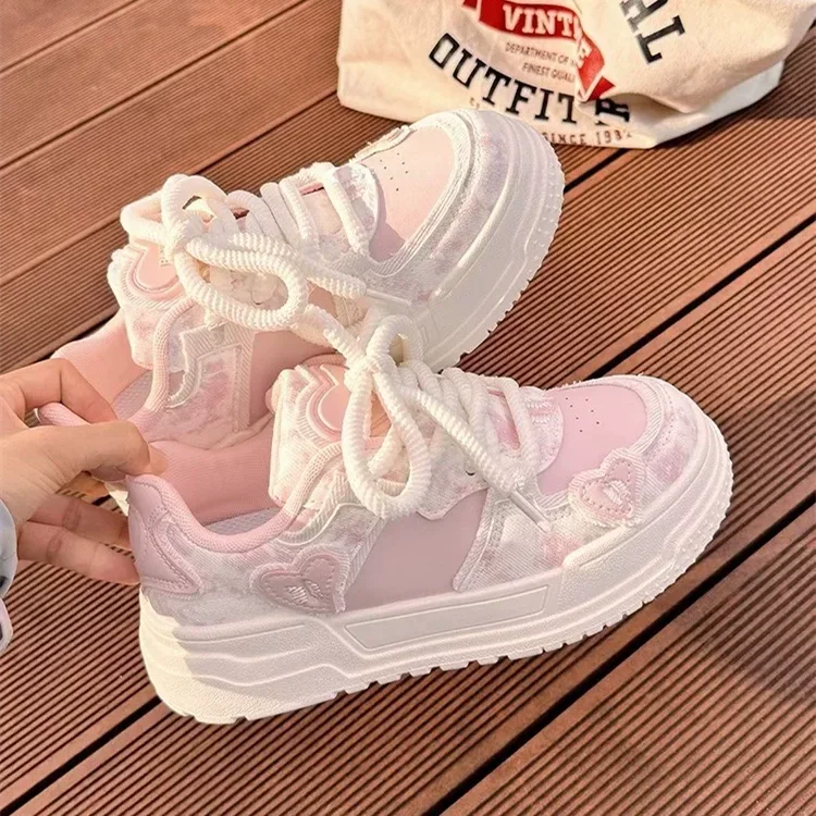 Sweet Women Sneakers Pink Kawaii Design Fashion Womens Sports Shoes Cute Patchwork Korean Style Casual Female Shoes