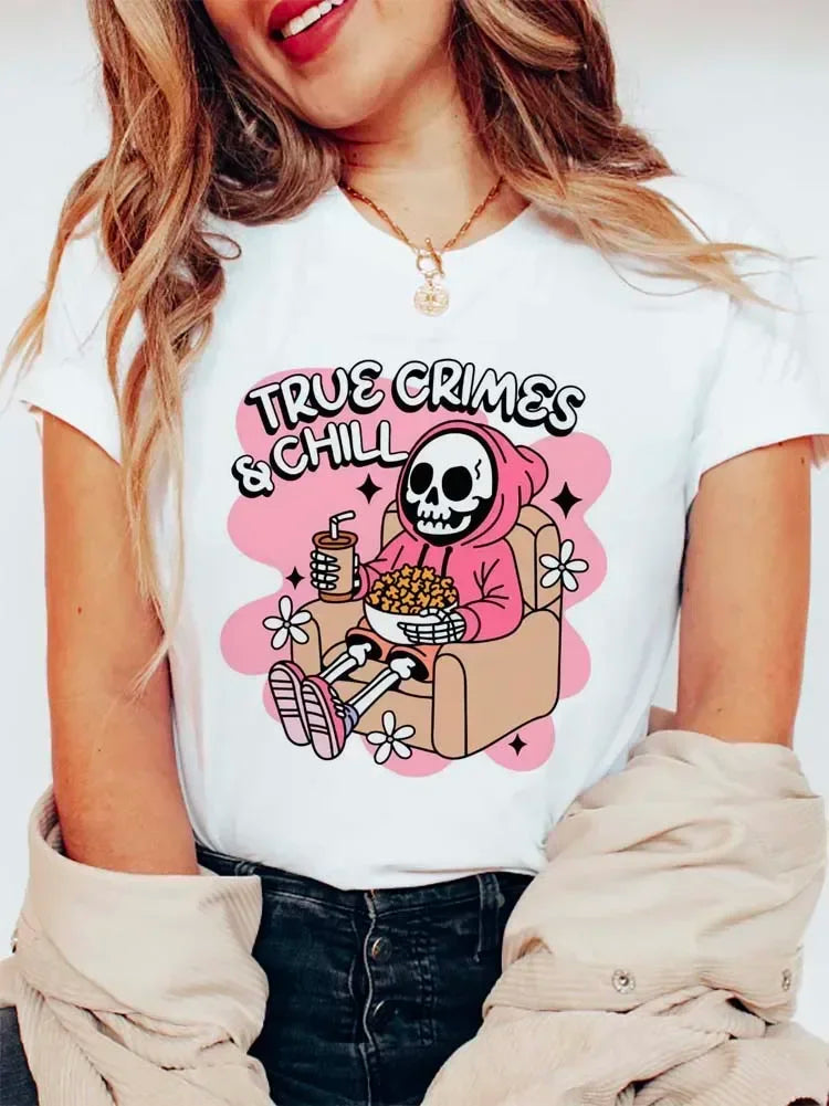T-Shirt Pattern Halloween Fashion Clothing Sweet T-Shirt Women's Printed Trendy Top O-Neck Fun Versatile Printed Summer T-Shirt.
