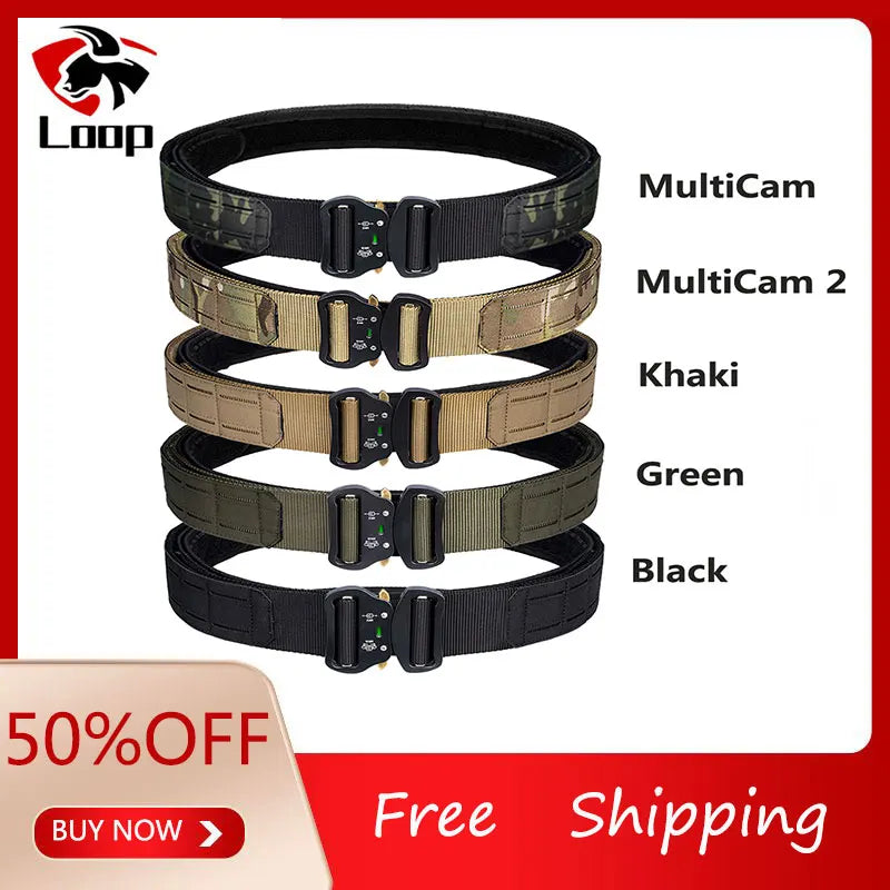 Tactical Quick Release Metal Buckle for Men, MOLLE Airsoft Men Belts, Military Tactical Belt, 2"
