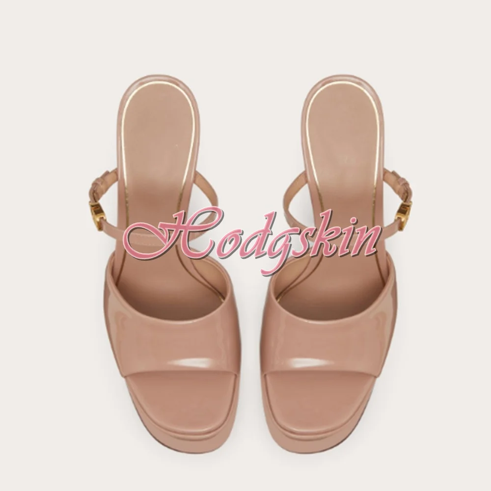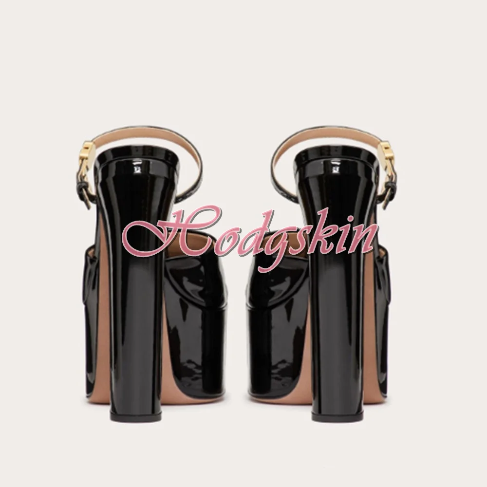Thick Sole Shiny Leather Sandals Open Toe High Platform Chunky High Heels Solid Buckles Straps Sandals Women Dress Shoes Design