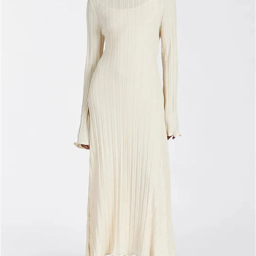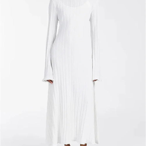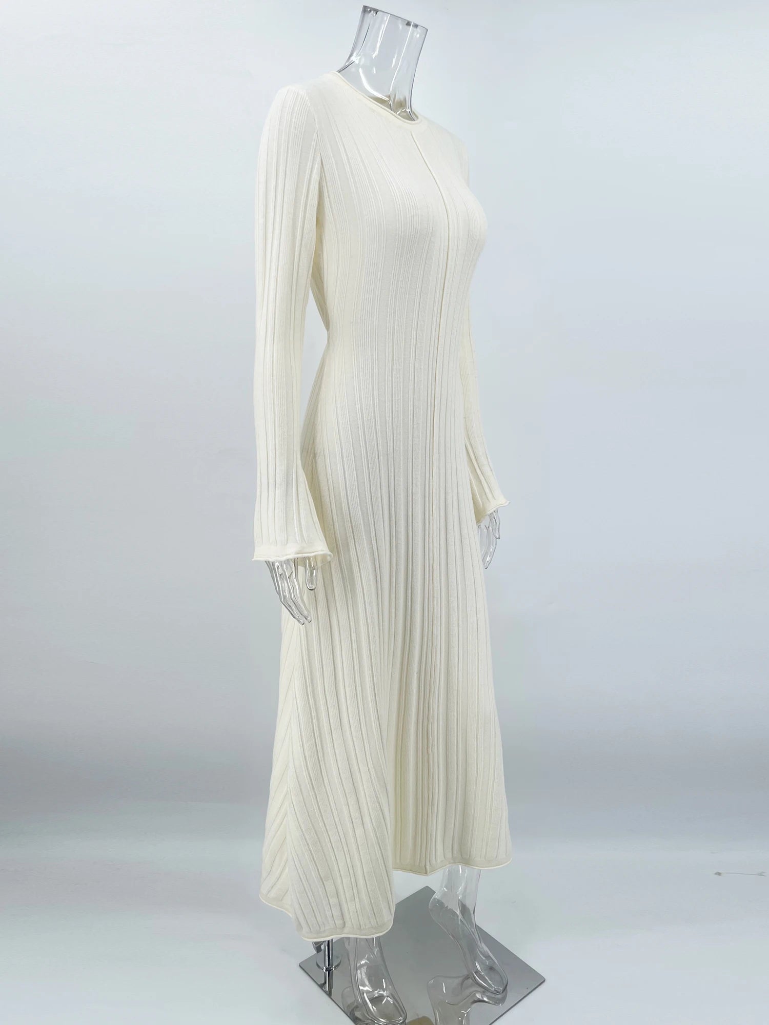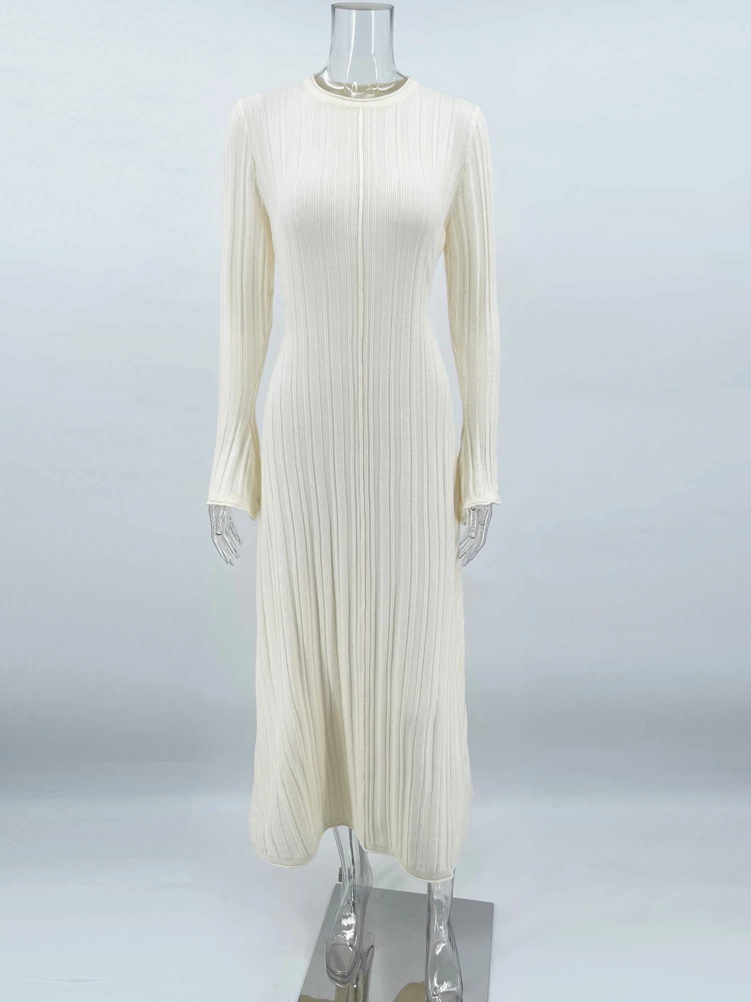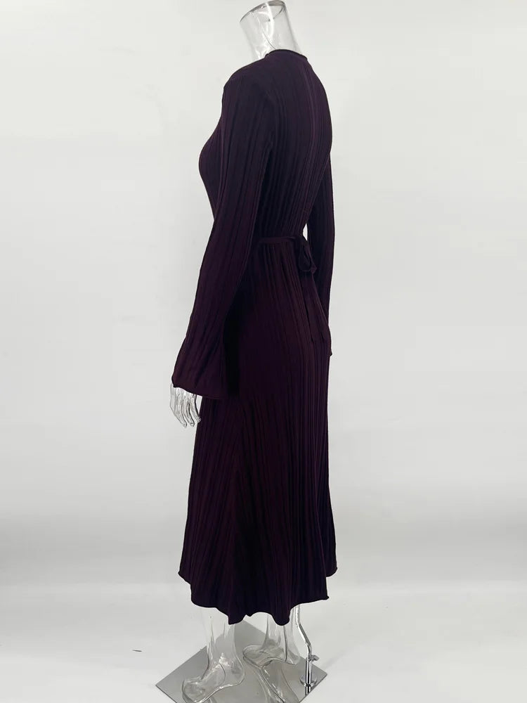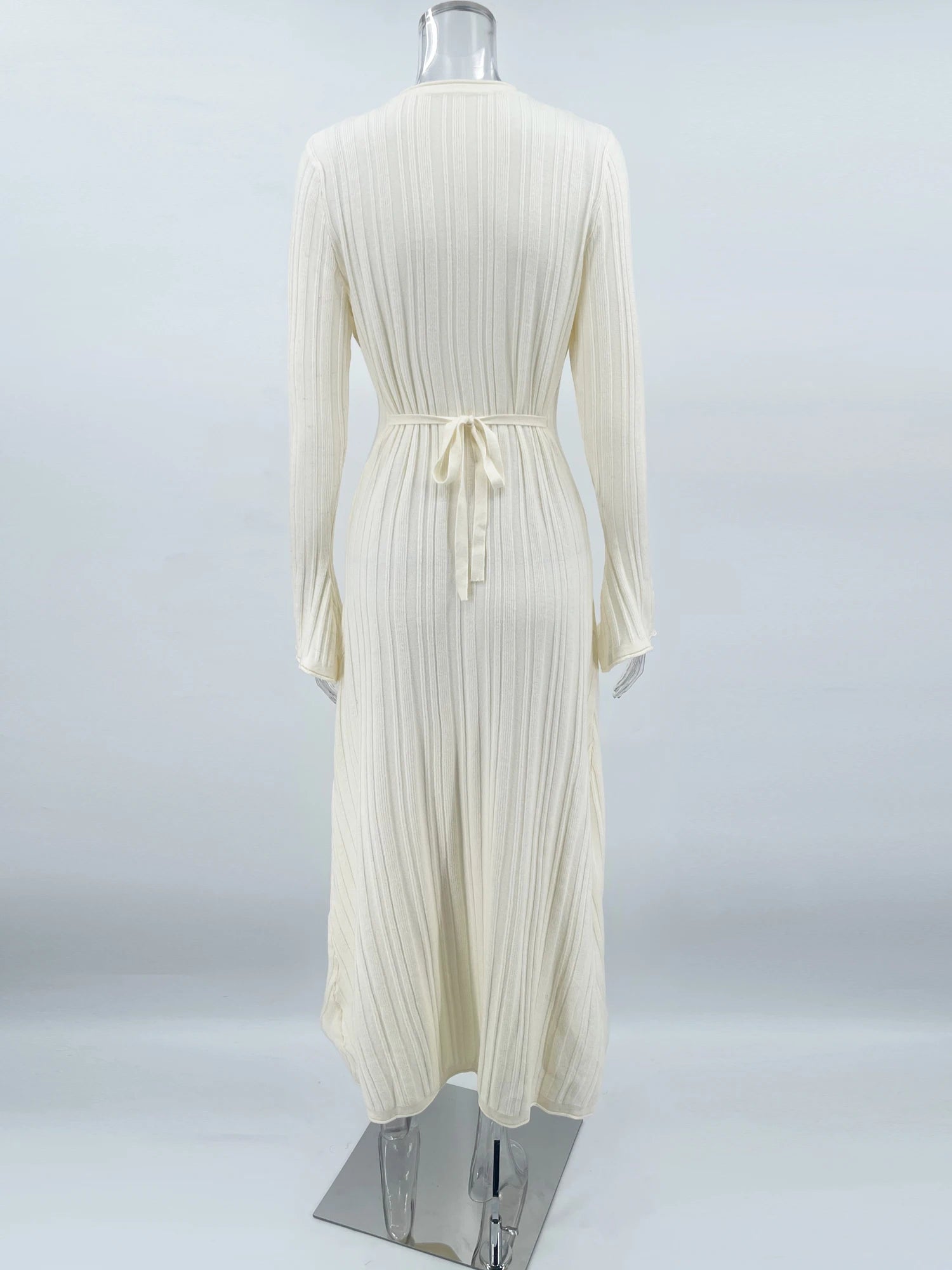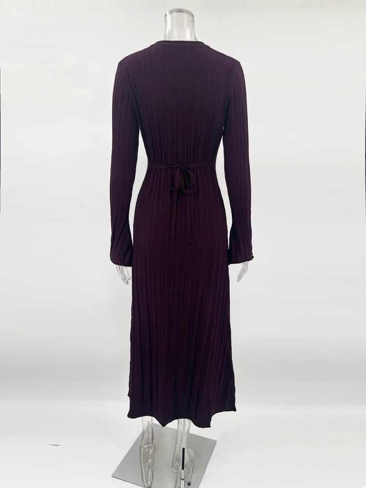 Tossy Knitwear Fashion Loose Maxi Dress Lace-Up High Waist Ribbed Long Sleeve Party