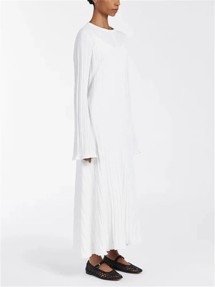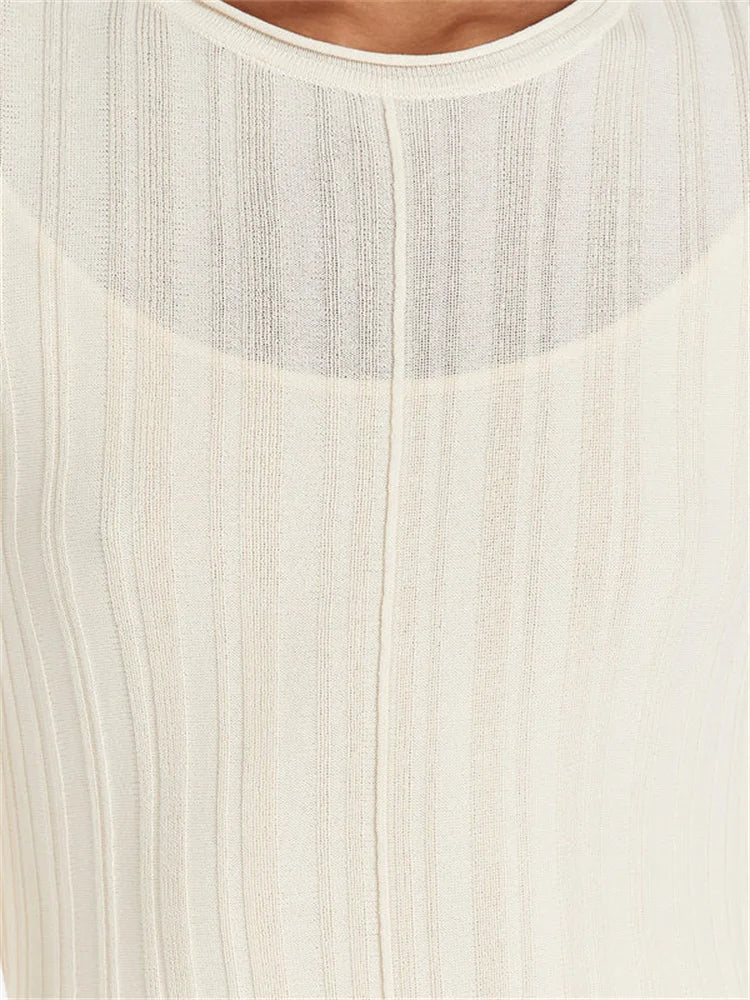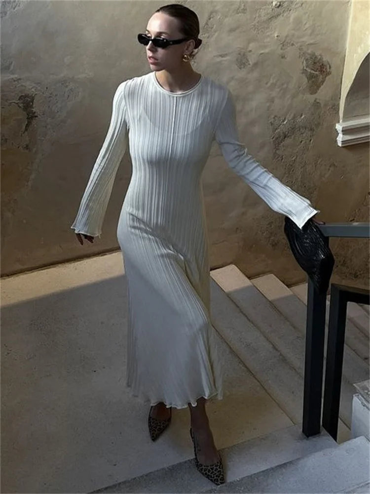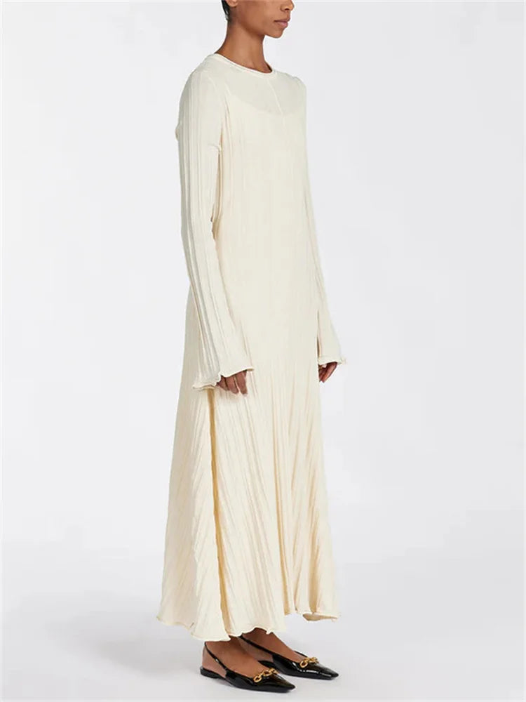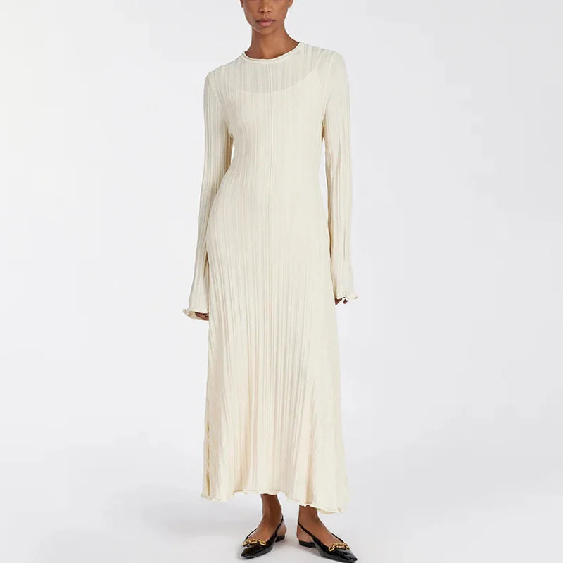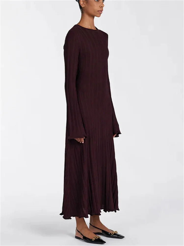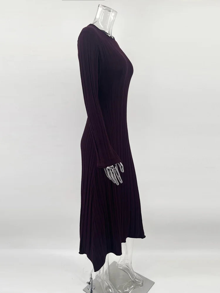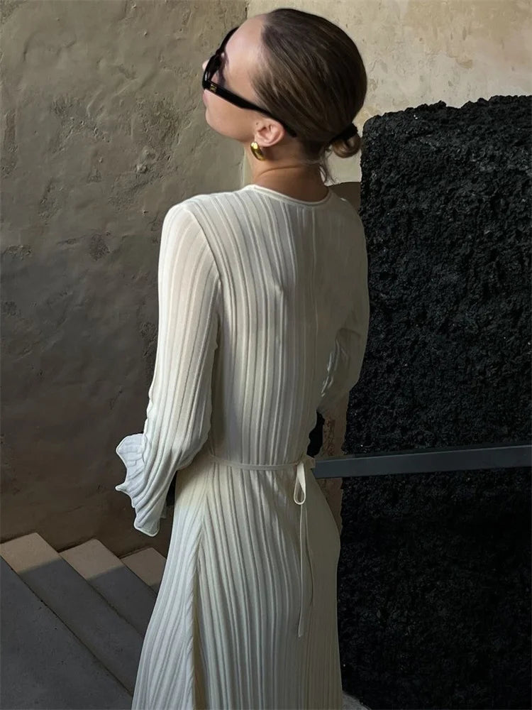 Tossy Knitwear Fashion Loose Maxi Dress Lace-Up High Waist Ribbed Long Sleeve Party