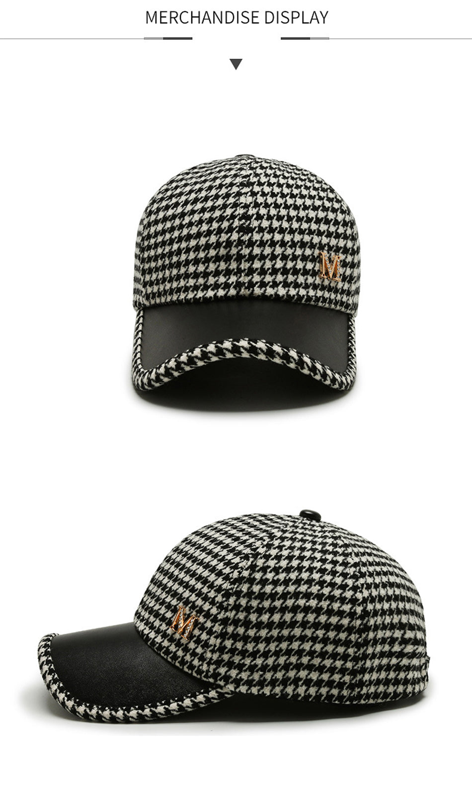 Trendy Houndstooth Baseball Cap - Dazzling Rhinestone M Decor - Unisex Sunscreen Trucker Hat - Perfect for Music Festivals & Outdoor Fun