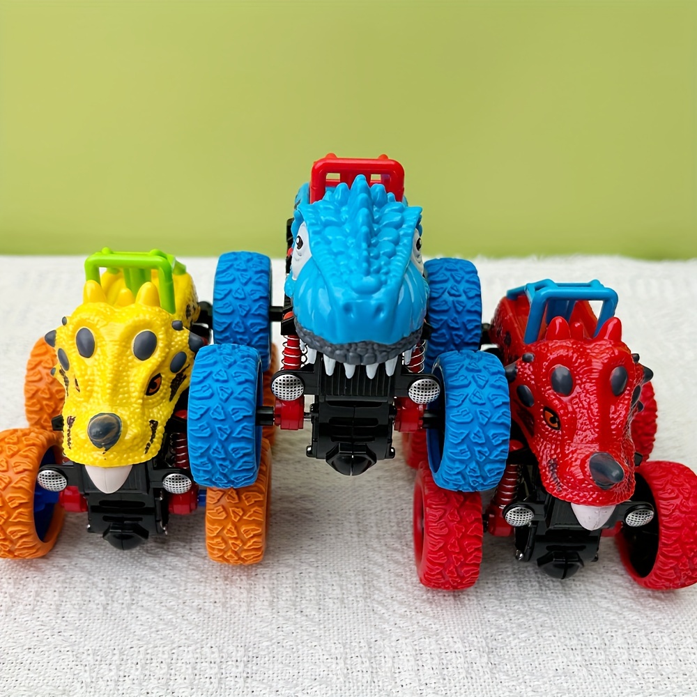 Two-way Inertia Red/Yellow/Blue Dinosaur Toys, Double-sided Flip Driving Drift Vehicle for Boys and Girls Gift