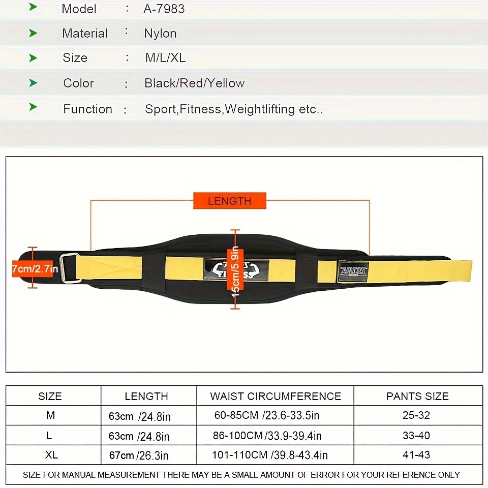 Weightlifting Champion Belt - Unisex Supportive Waist & Back Protector for Weightlifters and Deadlifters, Adjustable 23.6-43.4 Waist Circumference