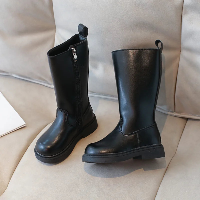 Winter Baby Girls Boots Fashion Warm Plush 2025 New Kids Biker Boots Outdoor Non-slip Retro High Top Princess Girls Causal Shoes