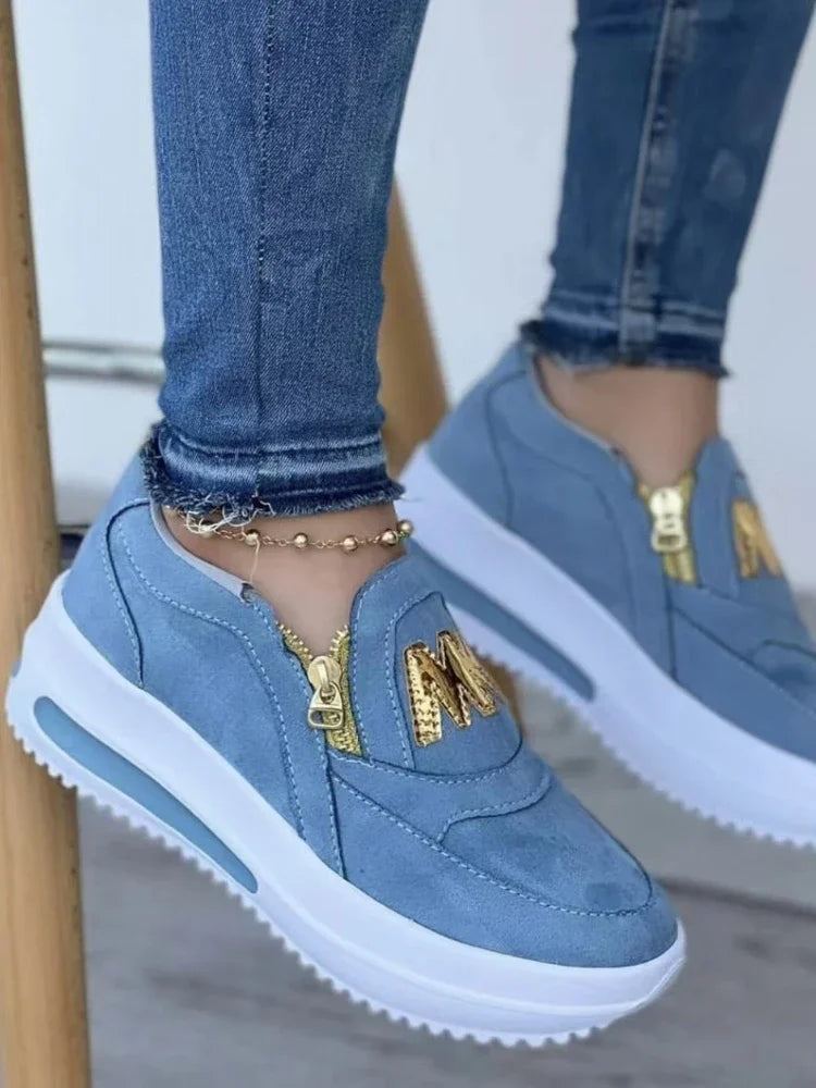 Women Autumn Sneakers Casual Double M Printed Side Zipper Platform Shoes Ladies Vulcanized Shoes Zapatillas De Mujer Women Shoes