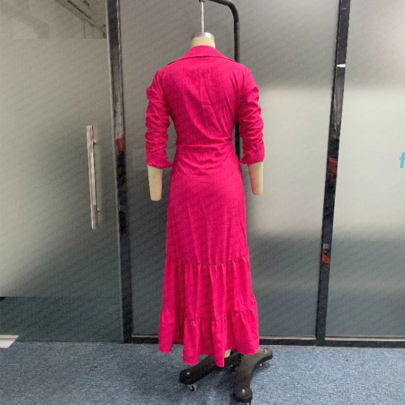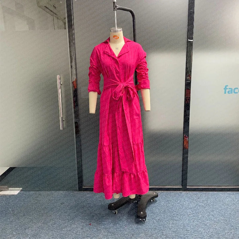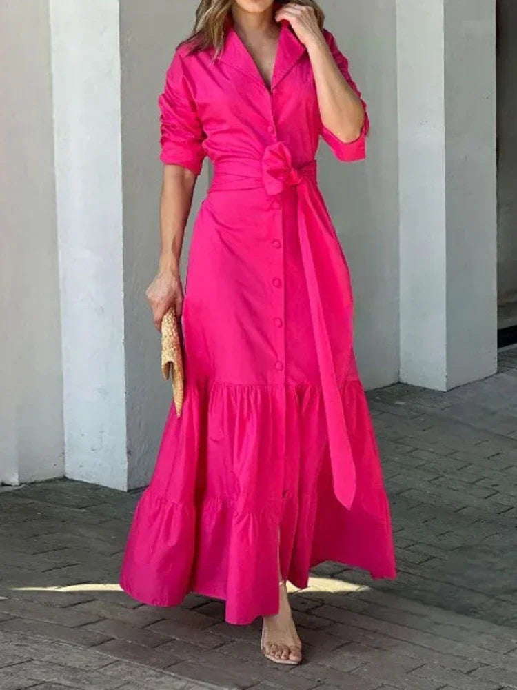 Women Long Sleeve dress Turn Down Collar Single Breasted Button Solid Loose fit