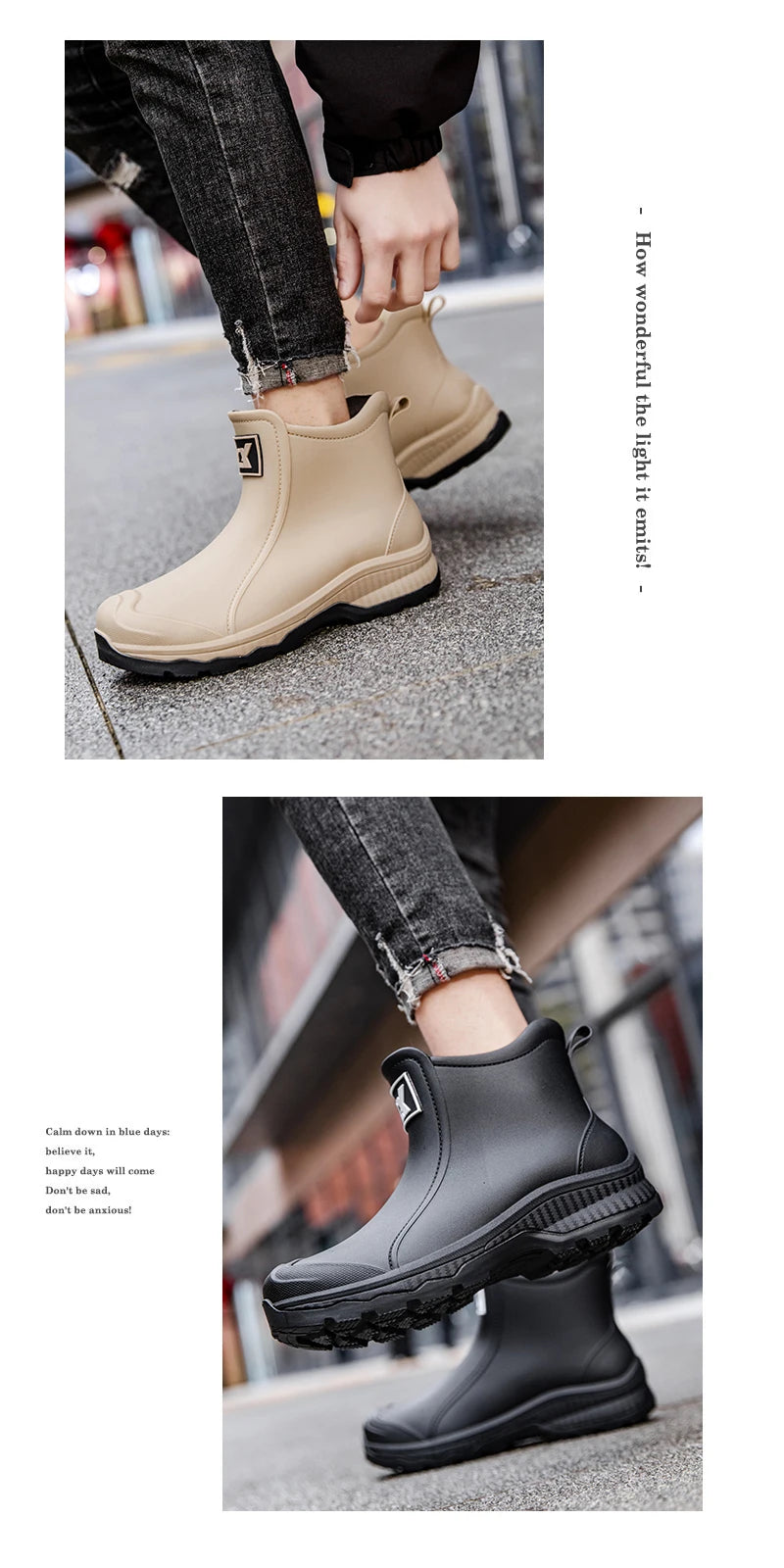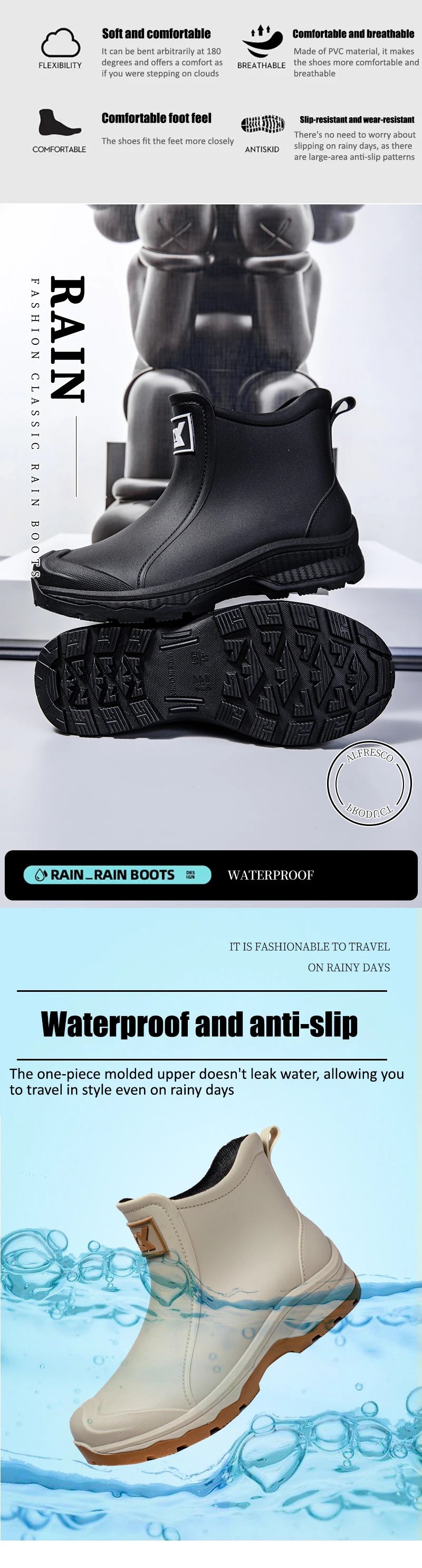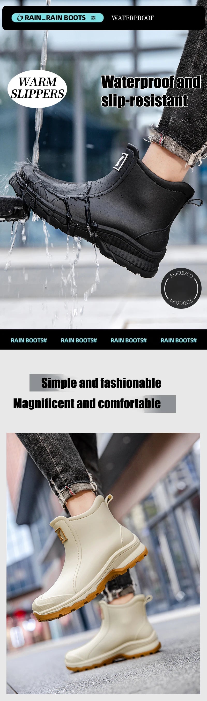 Women Waterproof Boots New Style Elastic Mouth Ankle Boots Mid Top Rain Shoes Non Slip Outdoor Indoor Chelsea Water Boot Woman
