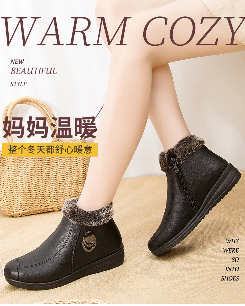 Women's Boots 2024 New Arrival Winter Snow Booties Female Fur Ankle Boots Waterproof Winter Warm Plush Shoes Non-slip Mom Bota
