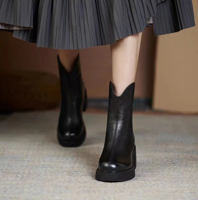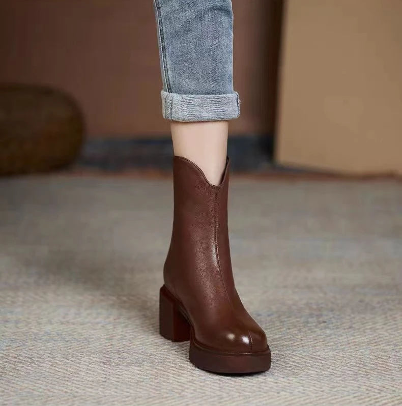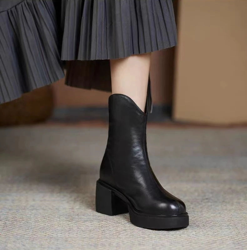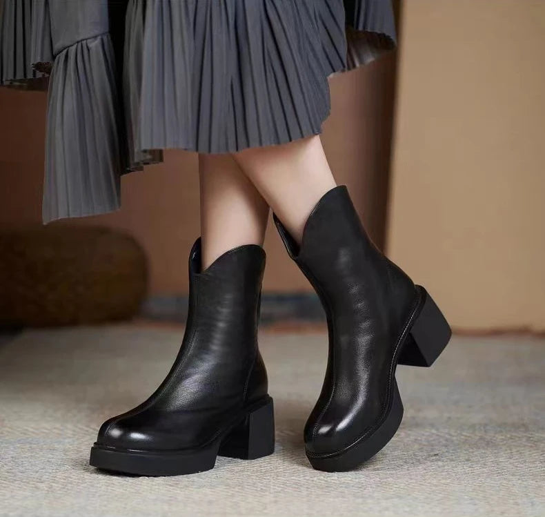 Women's Shoes Chelsea Boots Woman Winter 2024 Cute Trend Elastic Half Promotion Genuine Leather On Offer With High Quality New