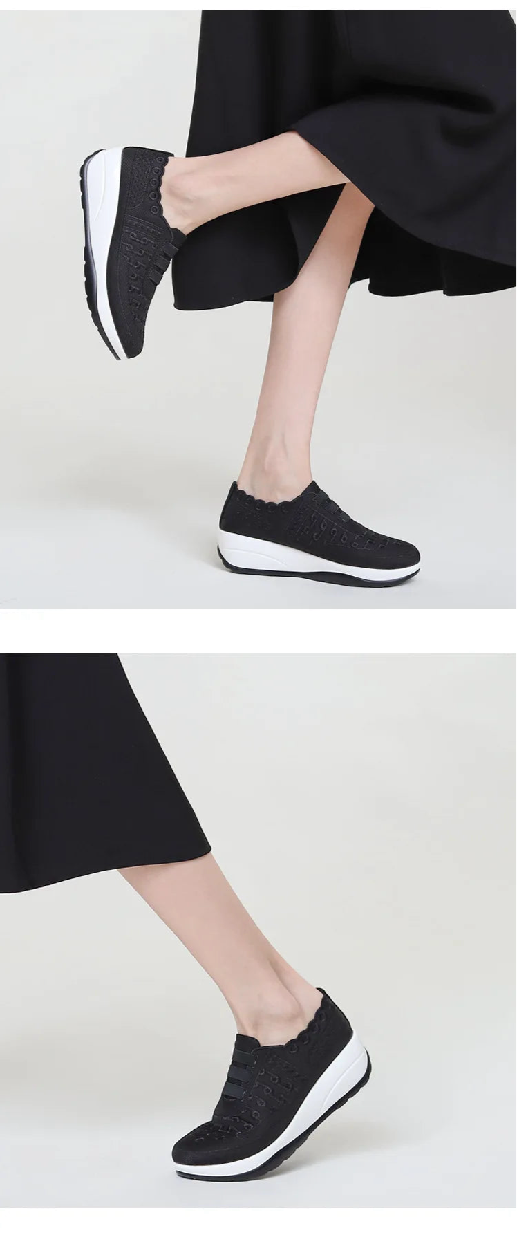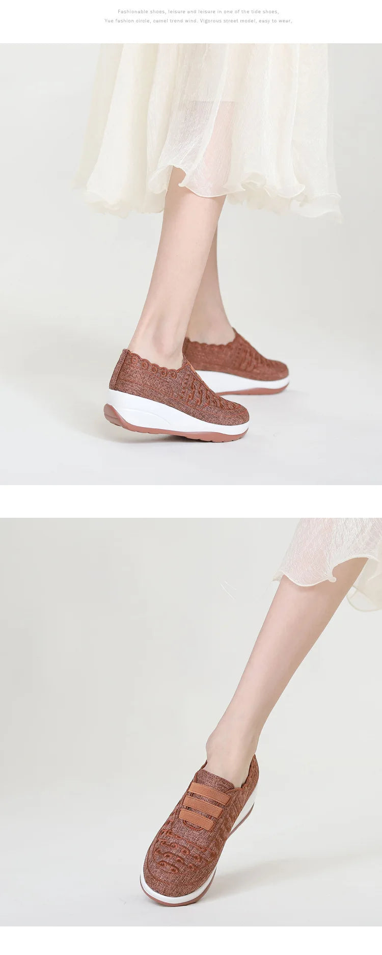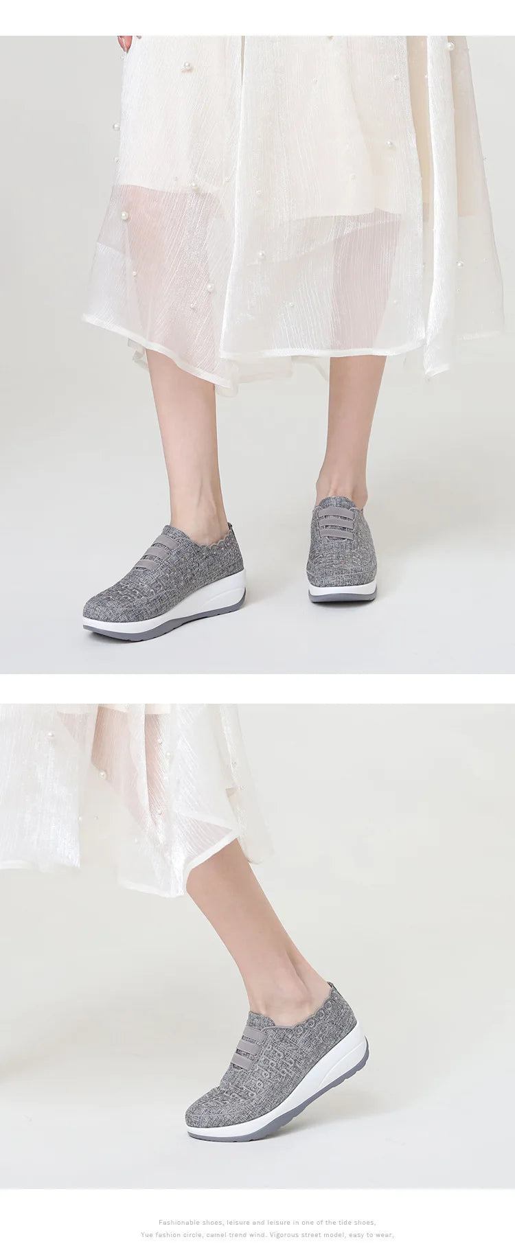 Women's Swing Sneakers Platform Wedge Slip on Casual Sports Shoes for Woman Breathable Slimming Fitness Rocking Shoes Thick Sole