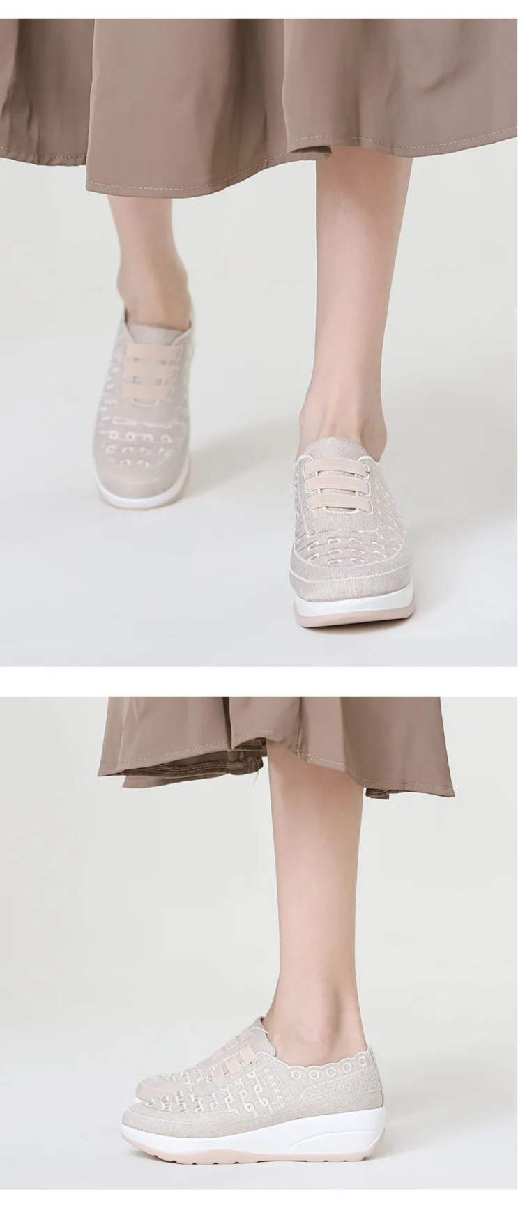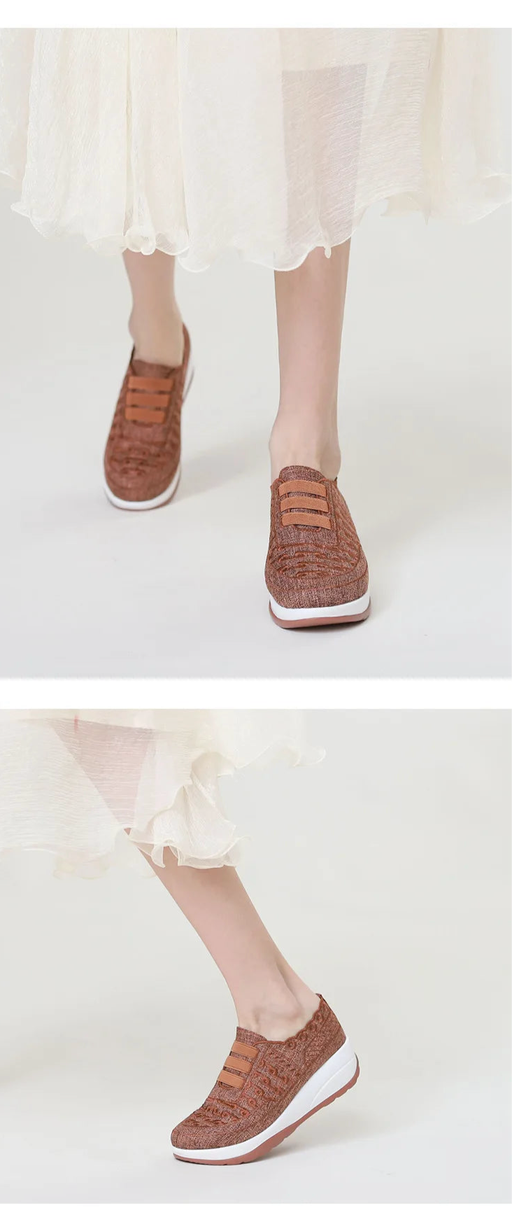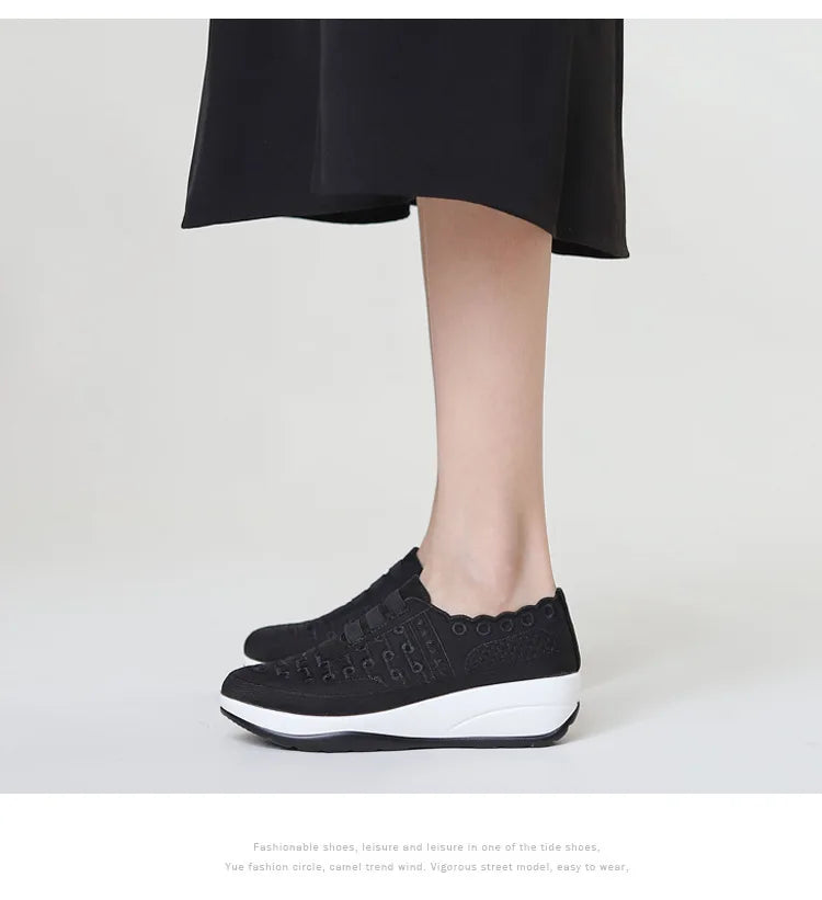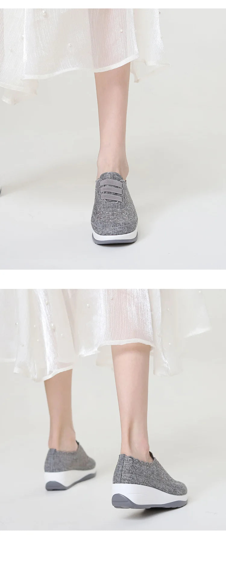 Women's Swing Sneakers Platform Wedge Slip on Casual Sports Shoes for Woman Breathable Slimming Fitness Rocking Shoes Thick Sole