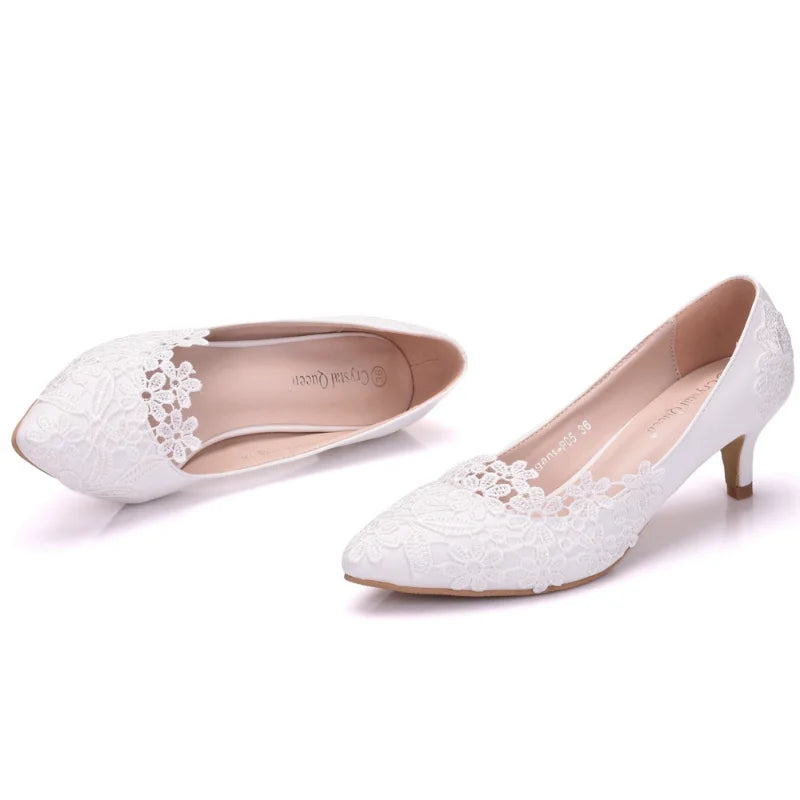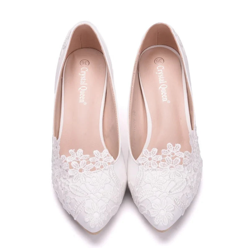 XIHAHA Fashion Women's Crystal Queen White Lace Flower Wedding Shoes Woman Point Toe Slips Lady Dress Flats Sneaker Big Size 43