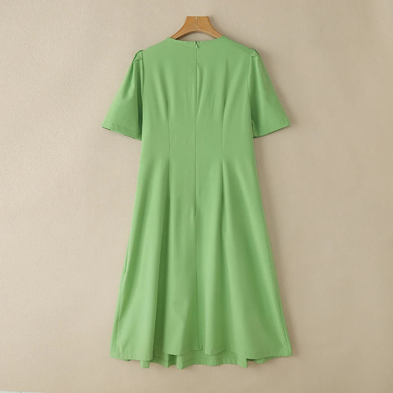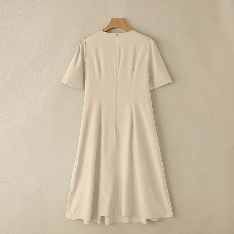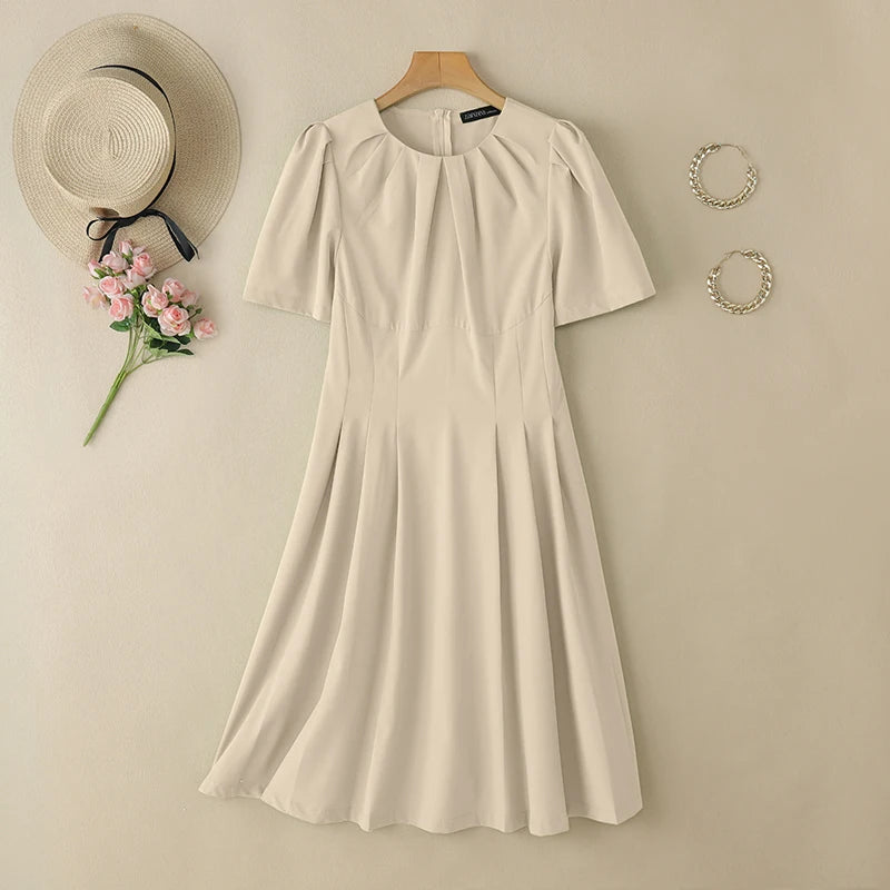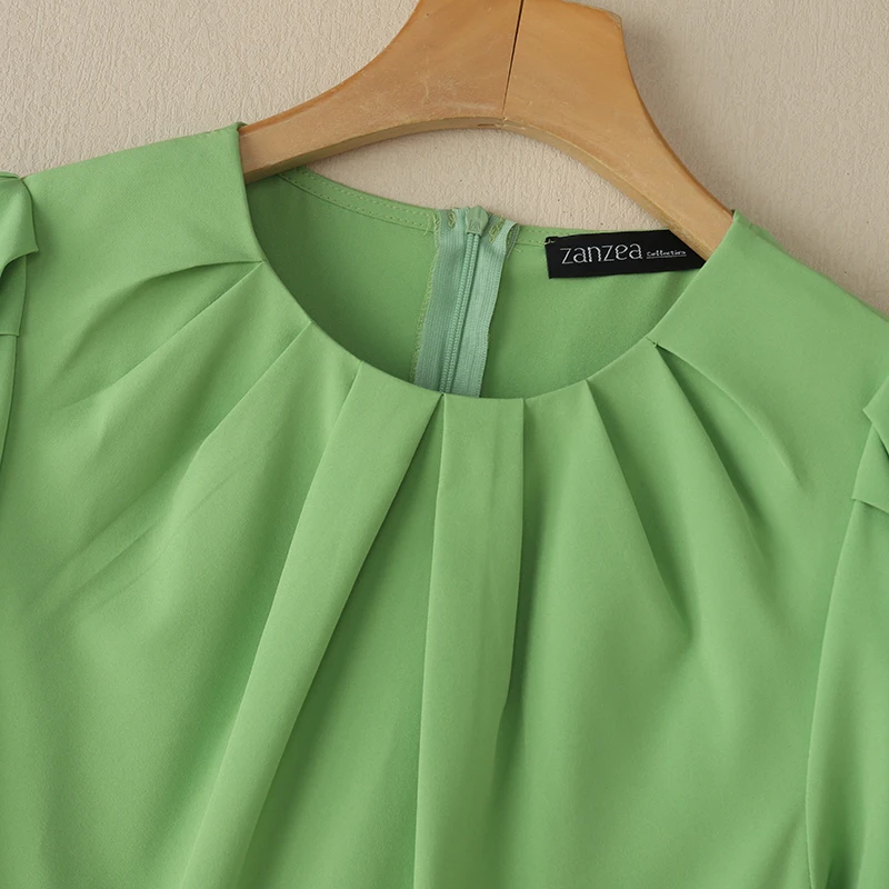 ZANZEA Office Lady Dresses Women Solid Pleated Dress Elegant Short Sleeve Party Vestidos Stylish Holidays Midi Dress